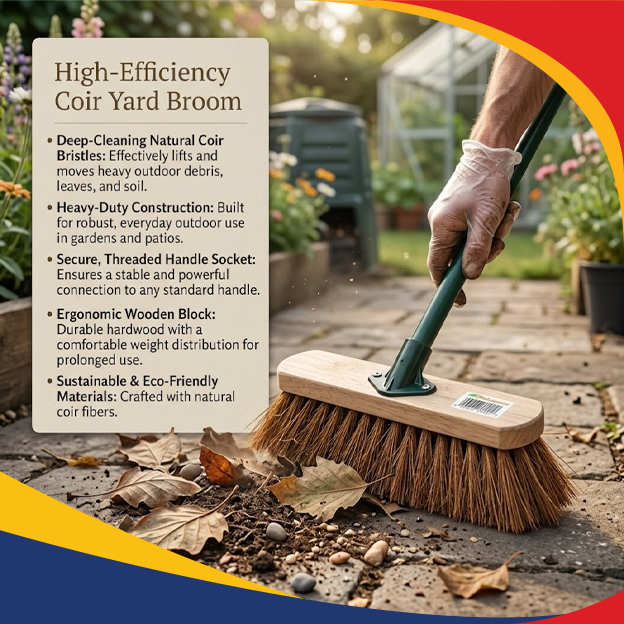 Sweep floors effortlessly with the 12″ Soft Coco Broom Head 290 (P/B 23mm). Made from soft coco fibers, this broom head is gentle on floors while effectively removing dust, dirt, and debris. The durable design ensures long-lasting use, and the 23mm plastic/socket fit makes it compatible with standard broom handles.