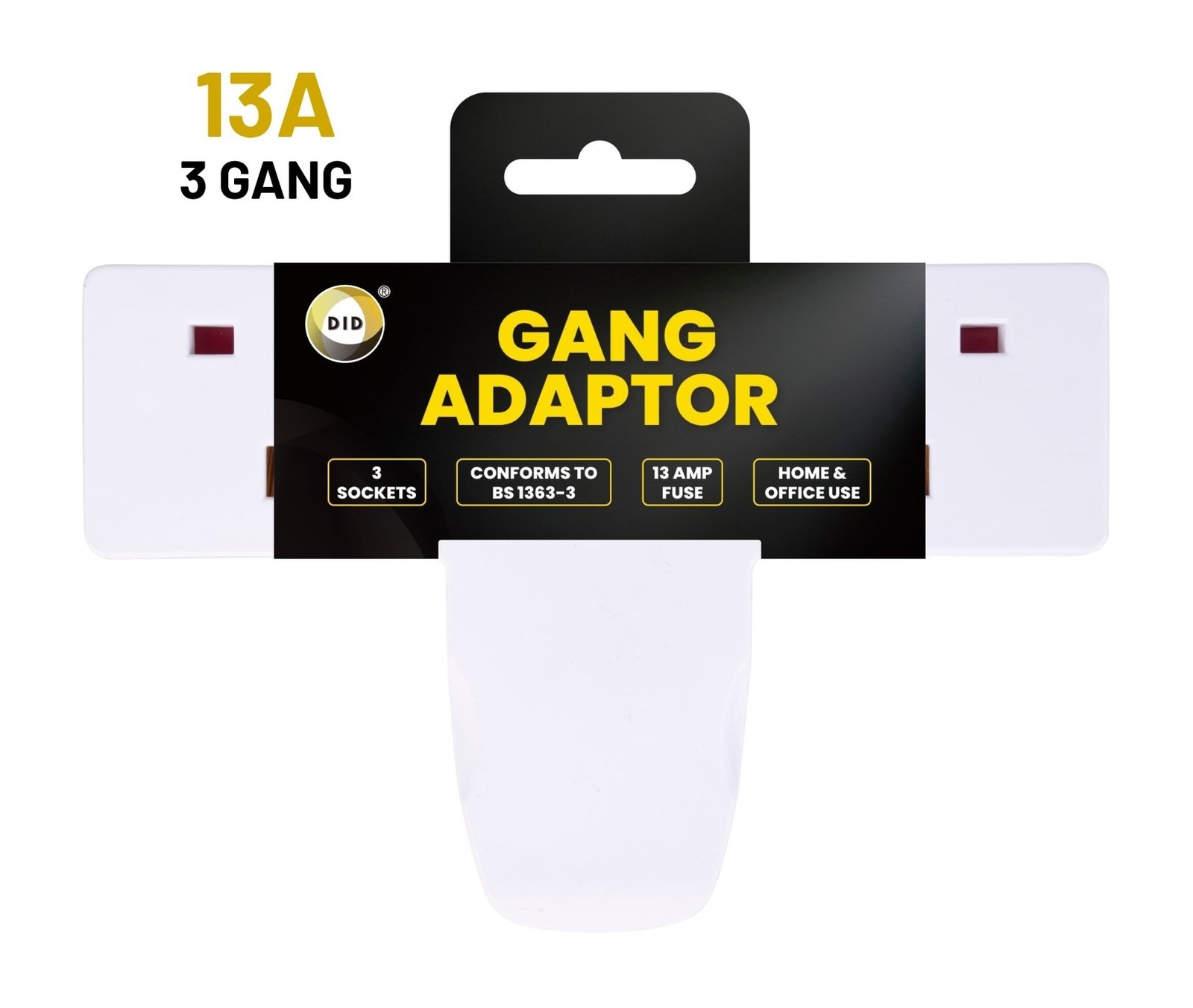 The 13A 3 Gang Adaptor is a practical solution for expanding a single UK socket into three outlets, allowing you to power multiple devices at once. Designed for home, office, and workspace use, it provides convenient access to additional sockets without the need for extension leads.