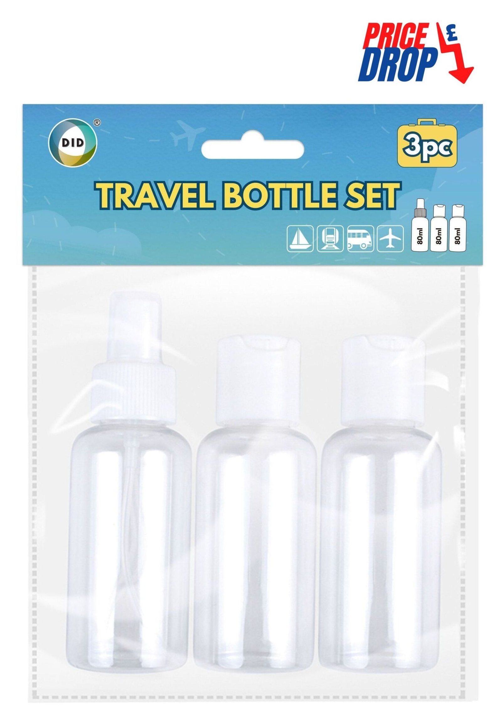 - Â Pack of 3 travel bottles
