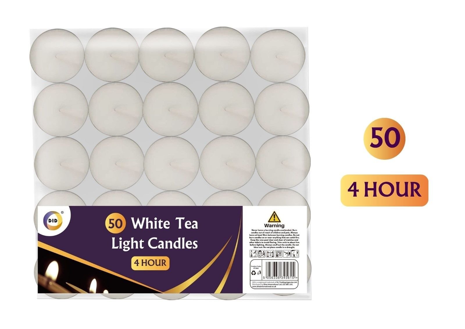 Enhance your space with soft, ambient lighting using this practical 50-pack of tea light candles.