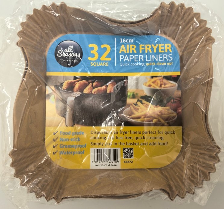 The AS Square Air Fryer Liners (16 cm, 32-pack) are high-quality, non-stick liners that make air frying easier and more hygienic. They prevent food from sticking to the basket, reduce cleaning time, and allow for healthier cooking with less oil.