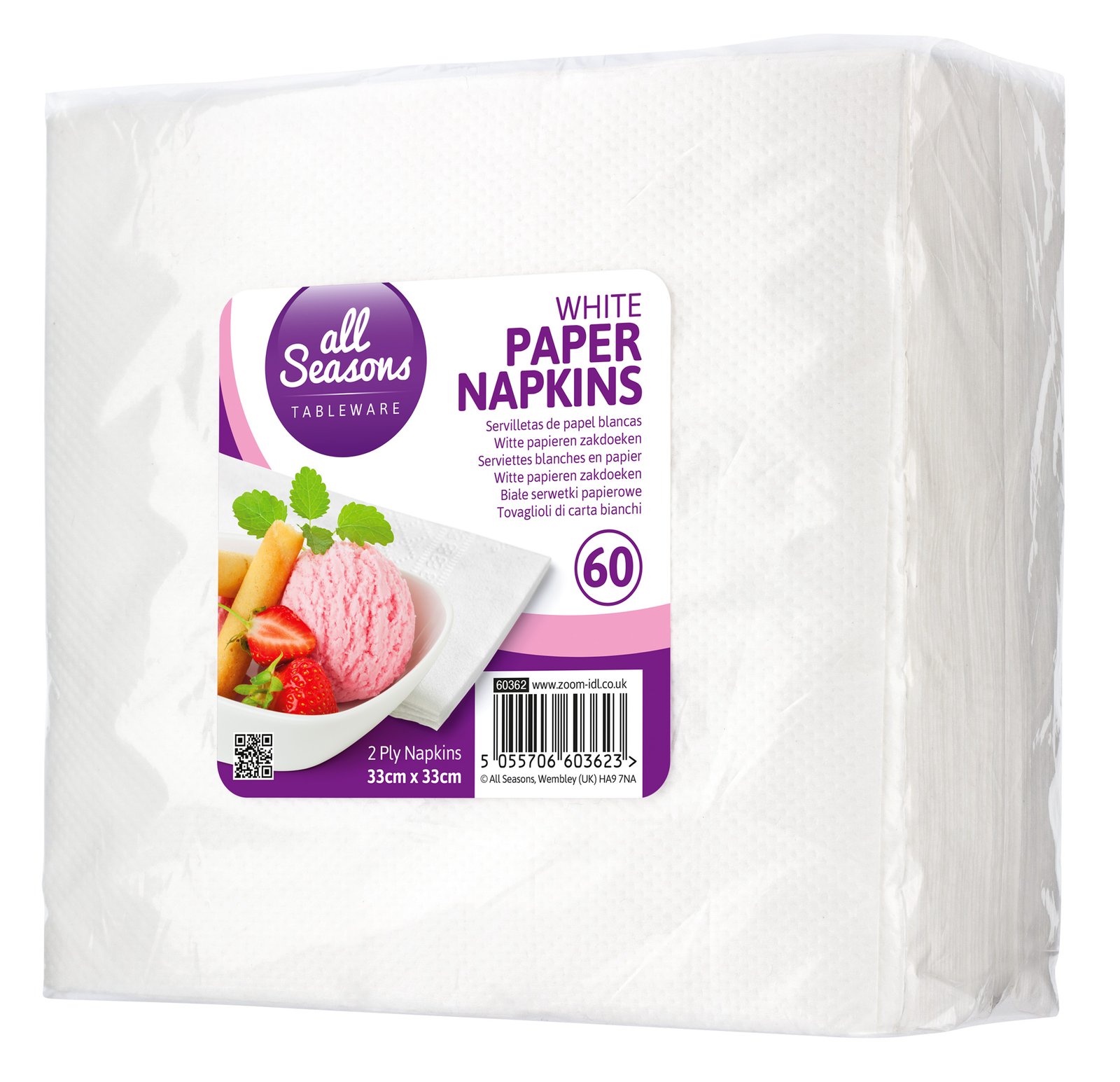 These white paper napkins (33x33cm, 2 ply) are perfect for everyday use, parties, events, or catering. Made from soft, absorbent paper, they provide durability, convenience, and hygiene for meals and beverages.