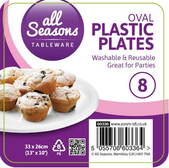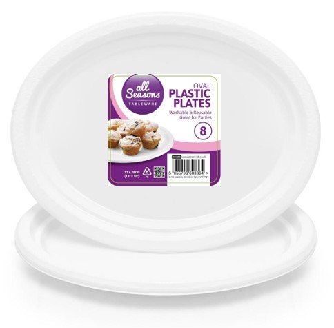 These oval plastic plates (33 x 26 cm) are ideal for serving meals, snacks, and desserts in households, parties, catering events, and takeaways. Made from durable, food-safe plastic, they are lightweight yet sturdy, ensuring convenience and hygiene for everyday use.