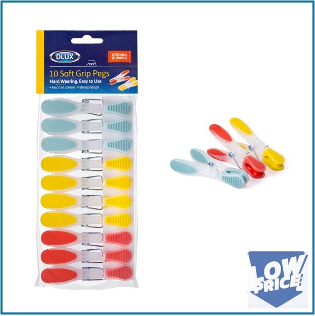 Secure your laundry with ease using the DL 10PK Soft Grip Pegs. Designed with a comfortable soft grip and strong spring action, these pegs hold clothes firmly on the line without slipping or damaging fabrics. Ideal for indoor and outdoor use, they are perfect for everyday laundry tasks.