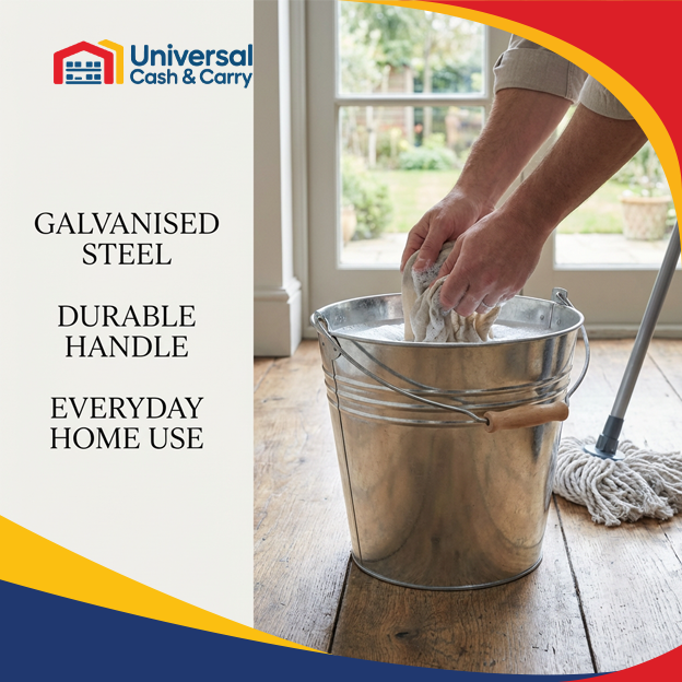 Durable and versatile, the DL 12L Metal Bucket is perfect for carrying, storing, and transporting liquids or materials. Made from high-quality metal, this 12-litre bucket is built to withstand heavy-duty use in households, workshops, or gardens. Its sturdy handle ensures easy carrying, while the robust construction guarantees long-lasting performance.