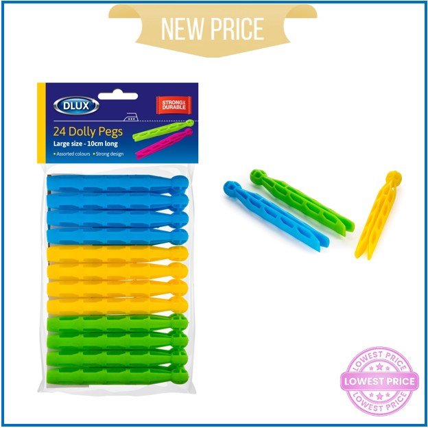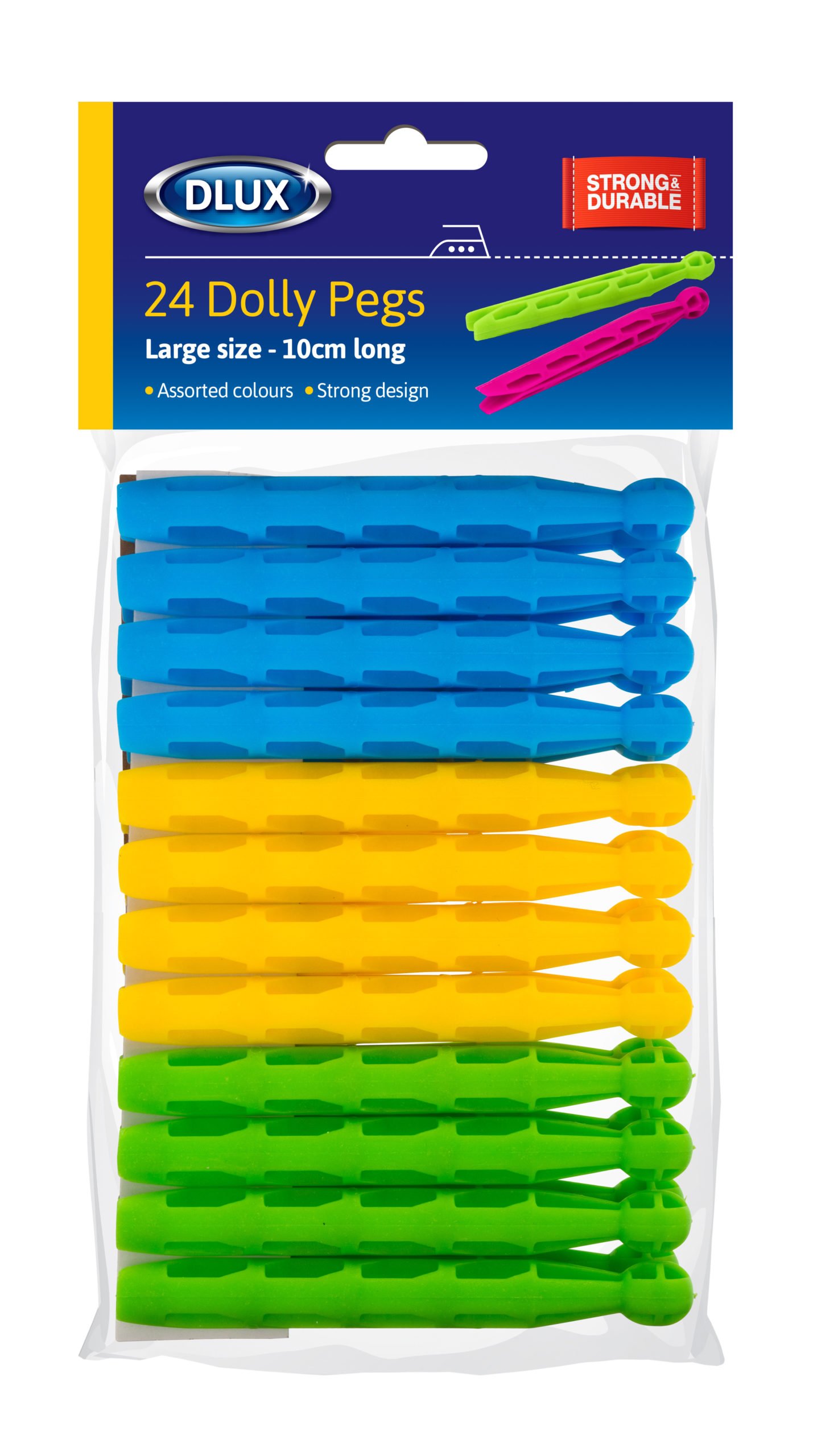 Secure your laundry efficiently with the DL 24PK Plastic Dolly Pegs. Designed with a durable plastic body and strong spring action, these pegs provide a firm grip on clothes while preventing damage. Ideal for indoor and outdoor use, they are perfect for everyday laundry tasks.