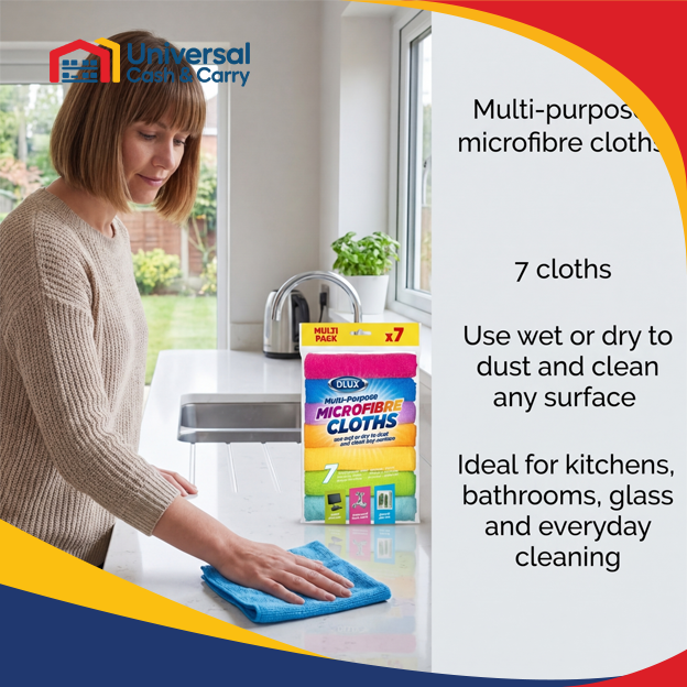 Handle all your everyday cleaning tasks with ease using the DL 7-Pack Multi-Purpose Microfibre Cloths. Made from high-quality microfibre, these cloths are highly absorbent, durable, and gentle on surfaces. Ideal for wiping, dusting, polishing, and general cleaning throughout the home or workplace.