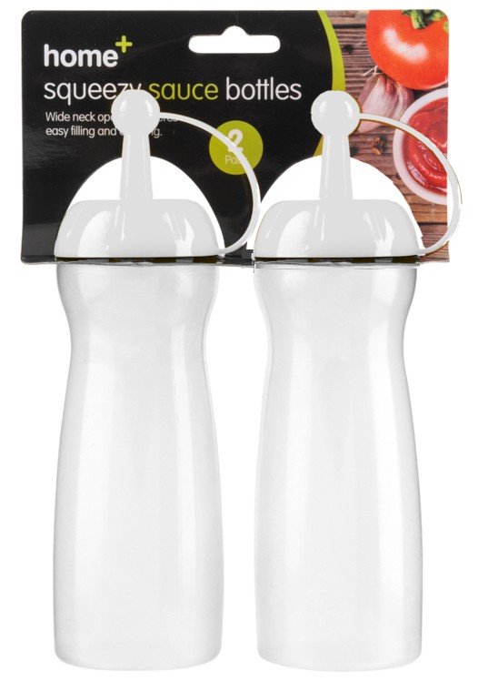 This 2-pack of squeezy sauce bottles is ideal for ketchup, mayonnaise, sauces, and condiments at home, in restaurants, or for catering. Made from durable, food-safe plastic, they are easy to squeeze, refill, and clean.