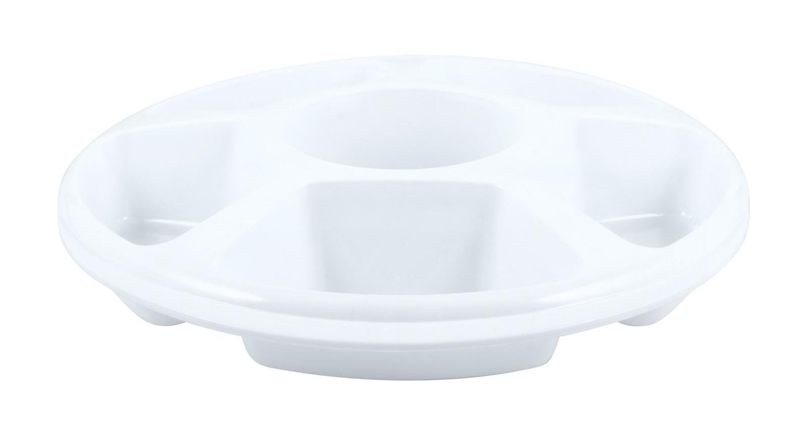 This round compartment tray is perfect for serving meals, snacks, or portioned dishes at home, parties, or events. Made from durable, food-safe plastic, it keeps different foods separate and organized, making it ideal for bulk serving, catering, or everyday use.