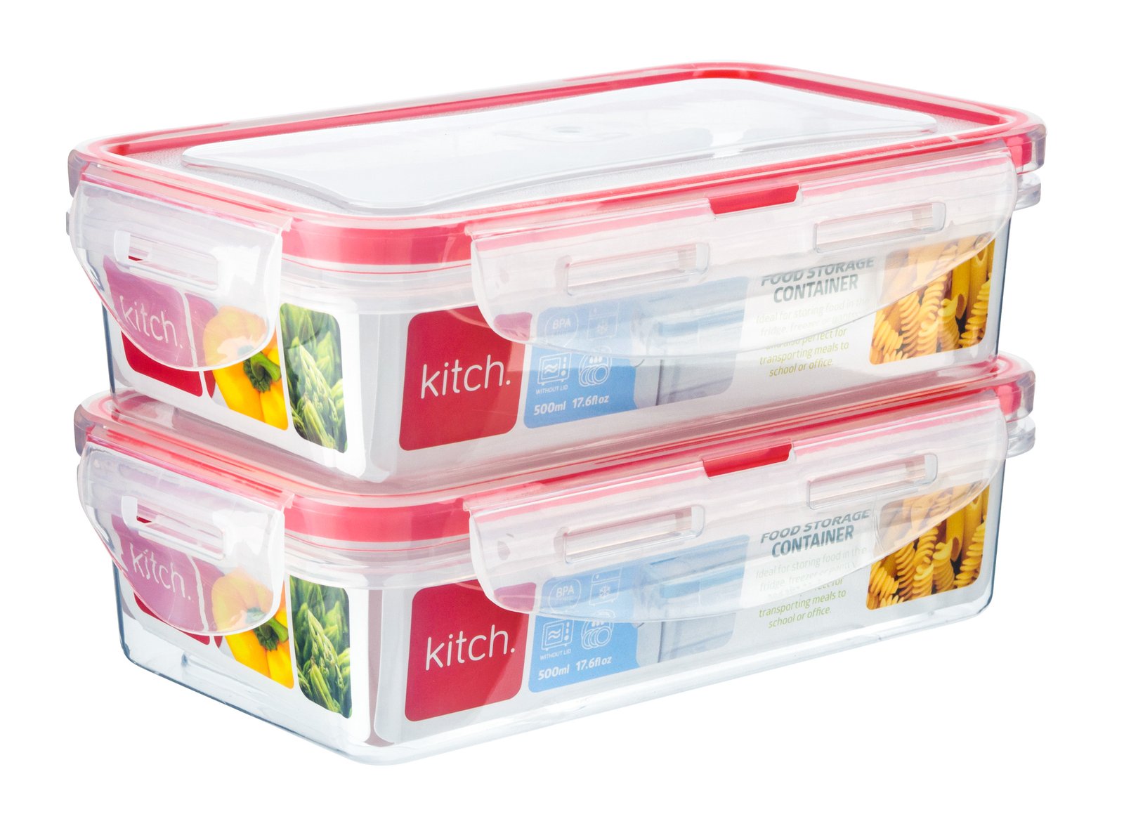 These rectangular click & close containers (500ml each) are perfect for storing small portions, snacks, leftovers, and meal prep. Designed with secure click & close locking lids, they help keep food fresh while reducing the risk of leaks. Made from durable, food-safe plastic, the containers are lightweight, reusable, and ideal for everyday kitchen use.