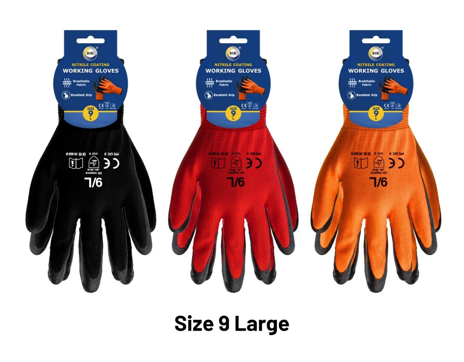 The Size 9 Nitrile Coated Gloves – L are designed to provide reliable hand protection while maintaining dexterity and comfort. The nitrile coating enhances grip, abrasion resistance, and puncture protection, making these gloves suitable for handling tools, machinery, or materials safely.